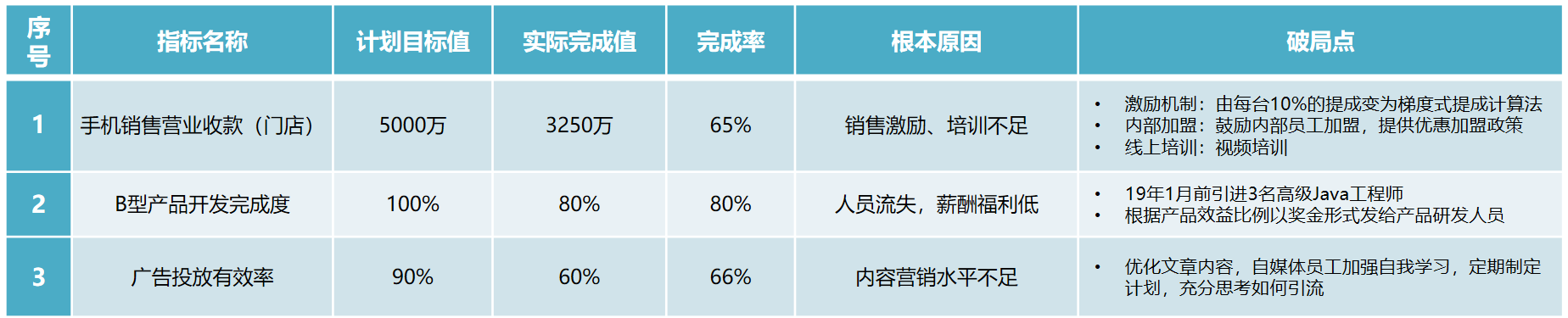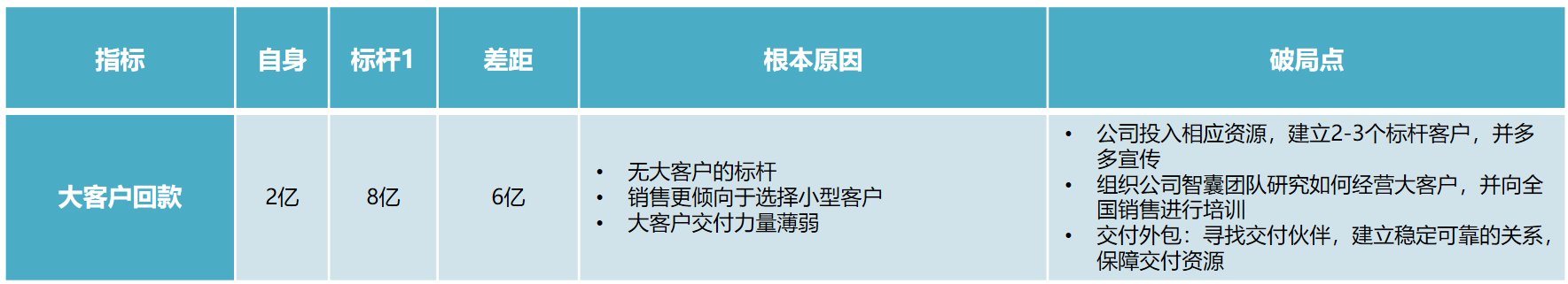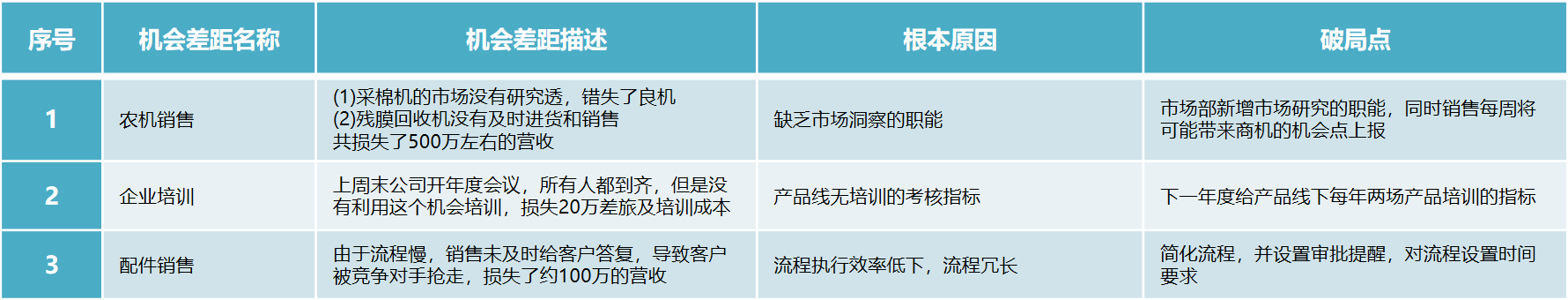 因此,差距分析分为业绩差距、机会差距、对标差距(下面通过示例简单说明一下)