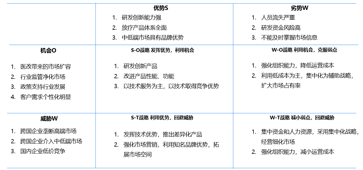 对以上的总结,可以采用SWOT分析法,同时推导出合理的战略意图: