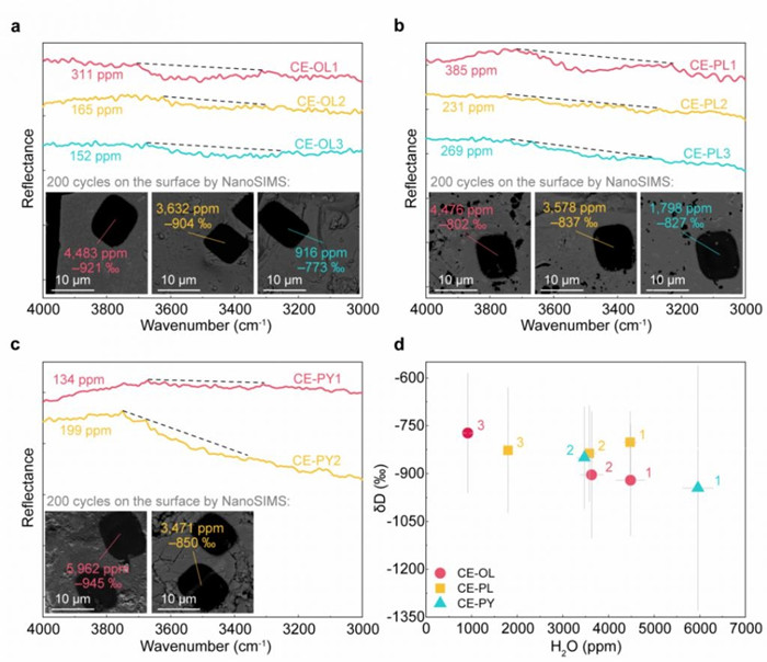矿物水含量和氢同位素比值。