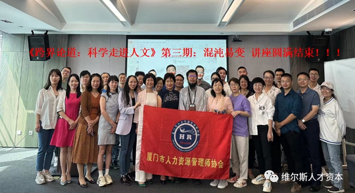 2022年10月29日上午,由厦门市人力资源管理师协会主办、维尔斯国际控股有限公司承办、根源心文化传播有限公司协办的《跨界论道:科学走进人文》——系列沙龙活动第三期顺利落幕!现场近50位证券从业者、企业家及高级职业经理人到场交流学习,收获颇丰。